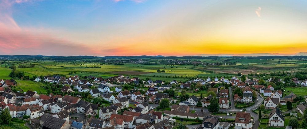 Ein Panorama Luftbild von meinem Heimatort. Aufgenommen direkt nach dem Sonnenuntergang, quasi genau zum richtigen Zeitpunkt.