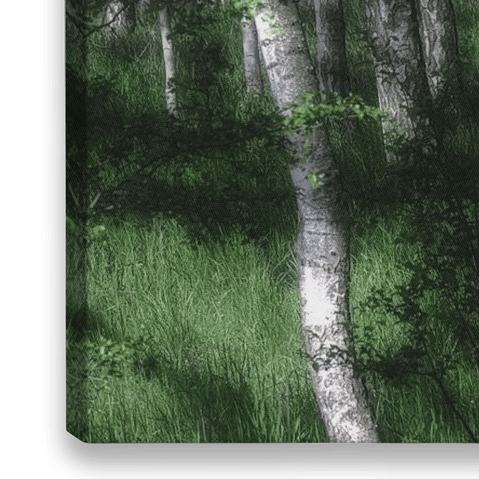 Birkenwald im Frühling im hohen Gras, früh morgens aufgenommen als Panoramafoto mit sehr hoher Auflösung.