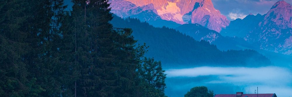 Gipfelglühen um die Zugspitze an einem Morgen im Karwendel