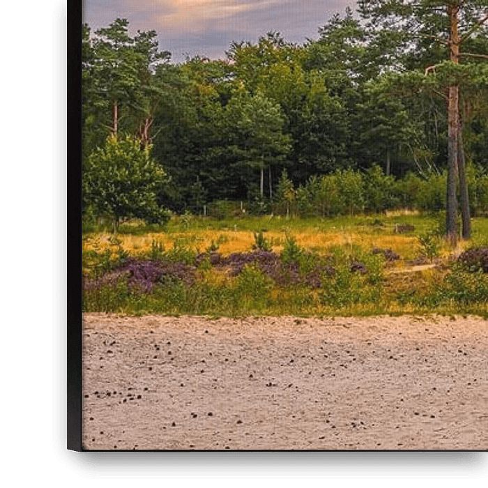 Ihre gewählte Kunst auf Leinwand, gespannt in einem Aluminiumrahmen. Schnell und einfach austauschbar für eine frische Ausstrahlung und ganz nach Ihren Wünschen.