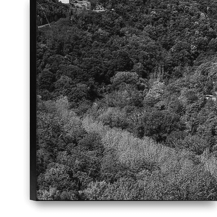 Bestelle das Foto Panorama von Pitigliano in Schwarz und Weiß von Henk Meijer Photography als Reproduktion auf Leinwand, Alu-Dibond, als Poster, Fototapete oder Acrylglasbild.