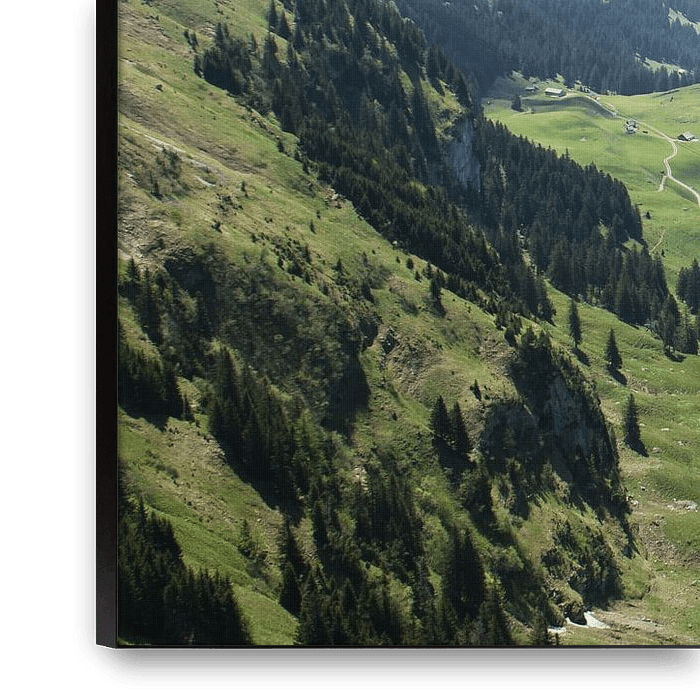 Bestelle dieses Landschafts-Wandbild Panoramaansicht Alpstein Massiv mit dem Sämtisersee in der Mitte von Besa Art als Reproduktion auf Leinwand, Alu-Dibond, als Poster, Fototapete oder Acrylglasbild.