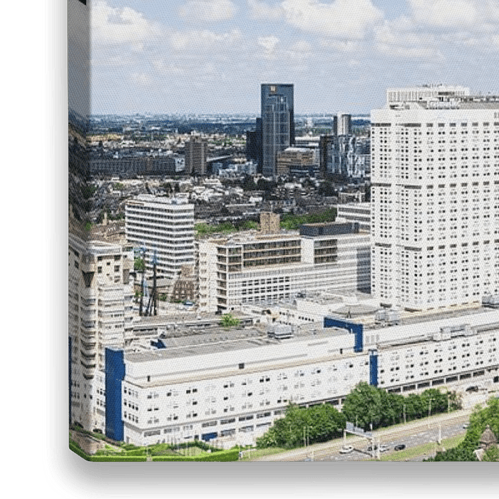 Bestelle dieses Rotterdam-Wandbild Panoramablick auf Rotterdam von Volt als Reproduktion auf Leinwand, Alu-Dibond, als Poster, Fototapete oder Acrylglasbild.