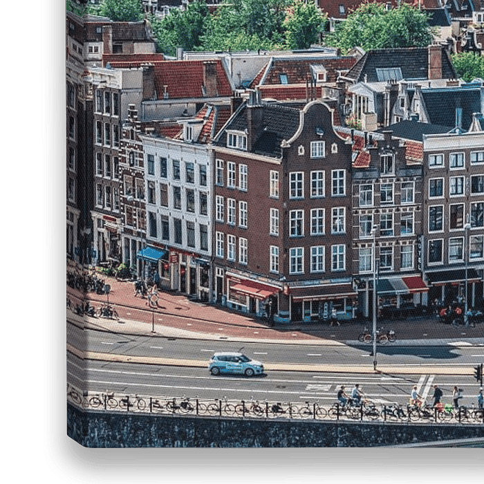 Bestelle das Foto Panoramablick auf das Amsterdam Centre, Prins Hendrikkade von Rietje Bulthuis als Reproduktion auf Leinwand, Alu-Dibond, als Poster, Fototapete oder Acrylglasbild.