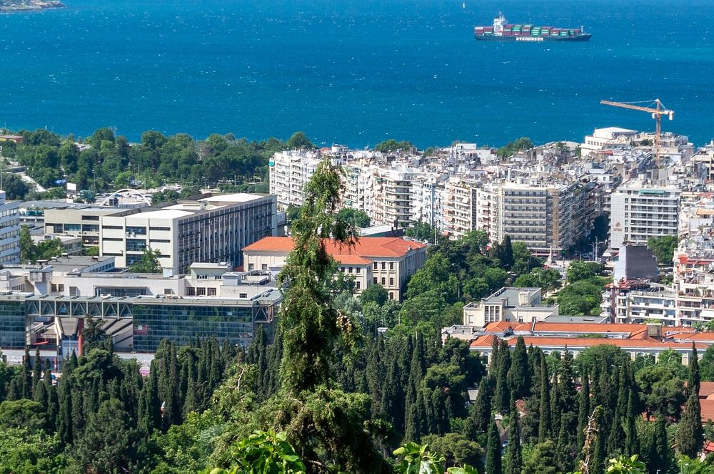 Panoramablick auf die Stadt Thessaloniki Stadt in Griechenland mit Meer