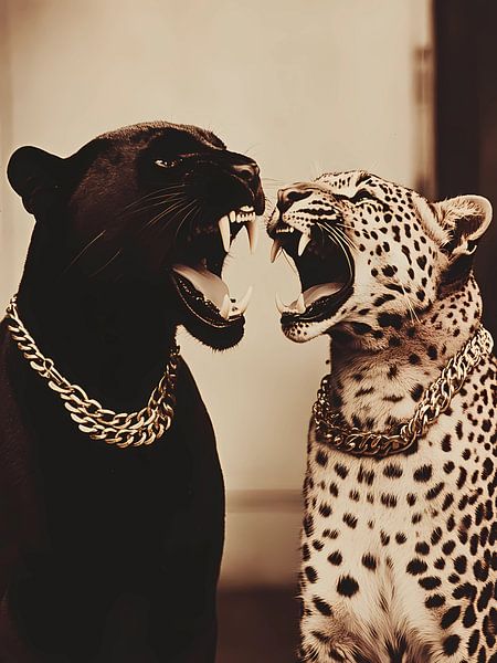 Bestelle diese Illustration Panther und Leopardengebrüll von Olga Wildrose als Reproduktion auf Leinwand, Alu-Dibond, als Poster, Fototapete oder Acrylglasbild.