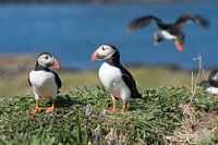 Papageientaucher, die sich gegenseitig den Hof machen, der Frühling ist da, und es gibt viel zu tun mit dem Nachwuchs.
