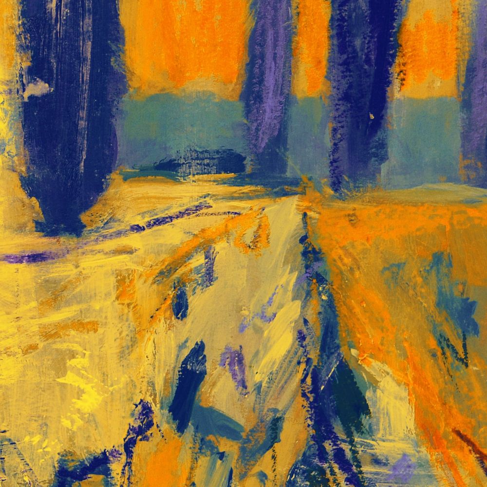 Bestelle dieses Landschafts-Wandbild Pappeln in Gelb und Blau von Nop Briex als Reproduktion auf Leinwand, Alu-Dibond, als Poster, Fototapete oder Acrylglasbild.