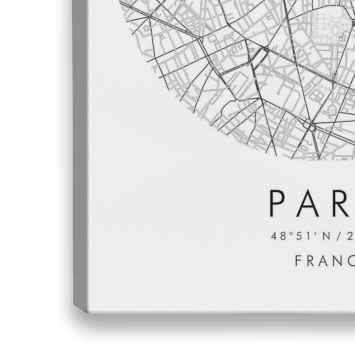 Eine Karte von Paris, minimalistische Ansicht mit GPS-Koordinaten.
