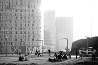 Die Menschen genießen den Sonnenschein in "Parkschiene Noord", Antwerpen.
