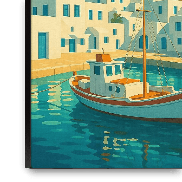 Bestelle dieses Landschafts-Wandbild Páros Insel Eleganz - Art Deco Griechenland Poster von Travel Shop als Reproduktion auf Leinwand, Alu-Dibond, als Poster, Fototapete oder Acrylglasbild.