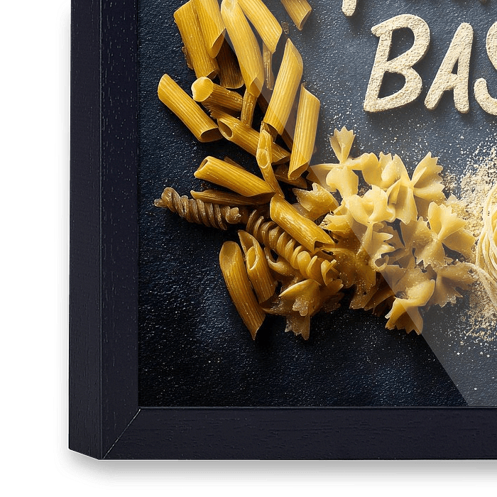 Verschiedene trockene Nudelsorten auf einem dunklen Hintergrund.