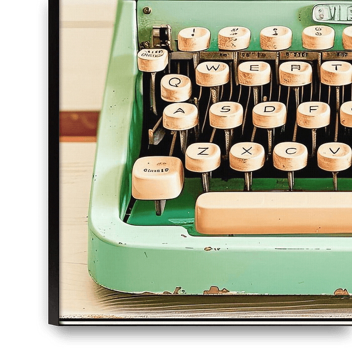 Bestelle das digitale Kunst Bild Pastell Retro Schreibmaschine Vintage Kunst von Vlindertuin-Art als Reproduktion auf Leinwand, Alu-Dibond, als Poster, Fototapete oder Acrylglasbild.