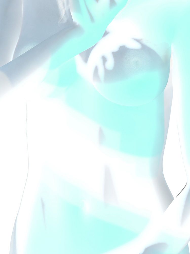 Paula nacktes digitales Acryl-Portrait in Blau und Grau