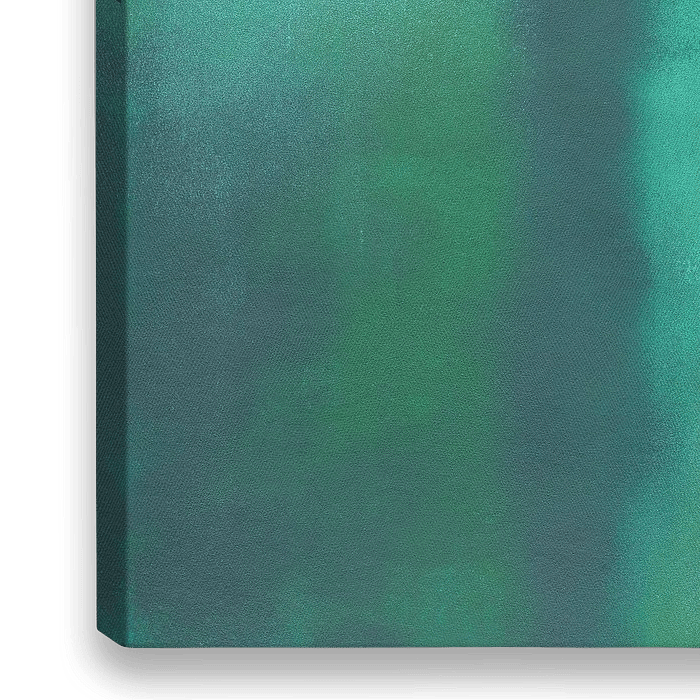 Das abstrakte Gemälde ist in verschiedenen leuchtenden Grün-, Blaugrün- und Blautönen gemalt und drückt Frieden, Hoffnung, Glauben, Freude und Liebe aus. Verschwommene geometrische Formen bilden in diesem Kunstwerk eine Kreuzform. Ergänzt wird das…