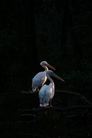 Bestelle dieses Vögel Wandbild Pelikane auf einem Ast von Michel Knikker als Reproduktion auf Leinwand, Alu-Dibond, als Poster, Fototapete, ArtFrame oder Acrylglasbild, maßgefertigt in höchster Qualität.