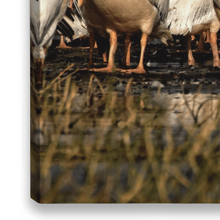 Bestelle dieses Vögel Wandbild Pelikanen von rene schuiling als Reproduktion auf Leinwand, Alu-Dibond, als Poster, Fototapete, ArtFrame oder Acrylglasbild, maßgefertigt in höchster Qualität.