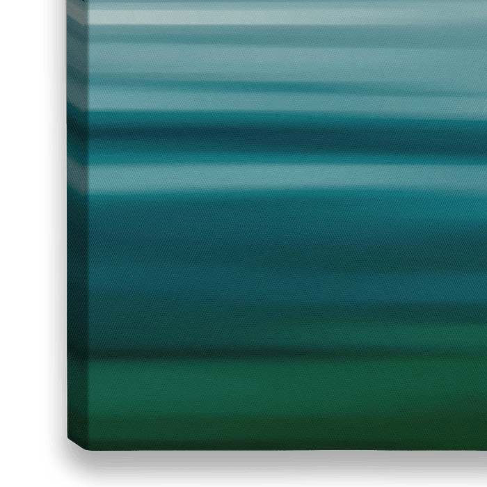 Abstrakt, minimalistische Darstellung einer Wasserlandschaft in aqua, grünen und blauen Farbtönen.