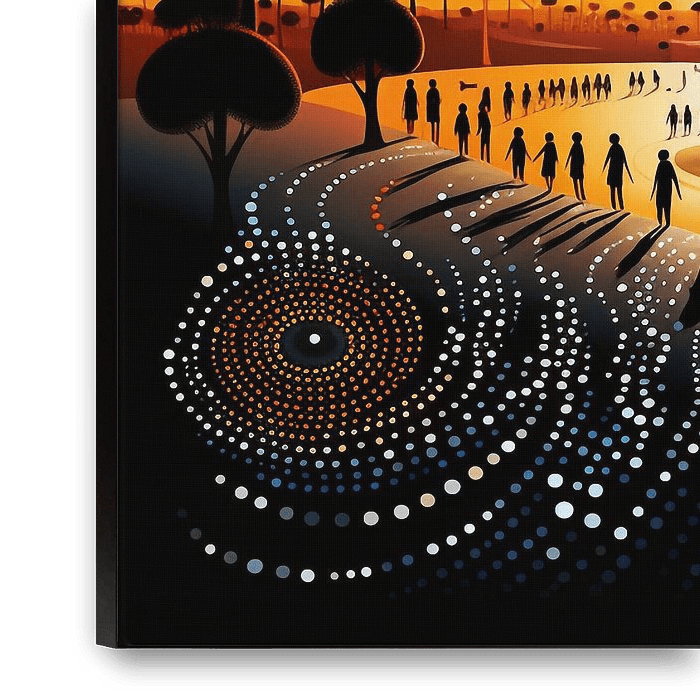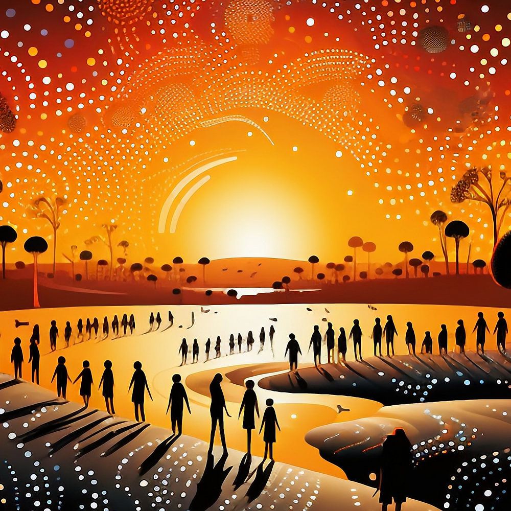Dieses Kunstwerk orientiert sich stark an der indigen inspirierten Punktkunst (Dot Art), die besonders aus der australischen Aboriginal-Kunst bekannt ist. Charakteristisch sind die vielen kleinen Punkte, die Muster, Landschaften und Bewegungen formen.