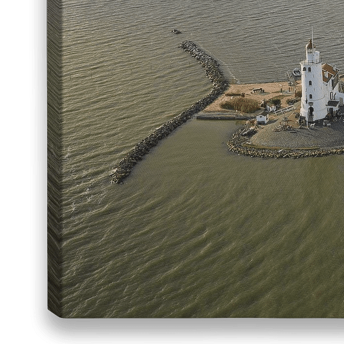 Das Pferd des Leuchtturms von Marken auf dem IJsselmeer, fotografiert aus der Höhe