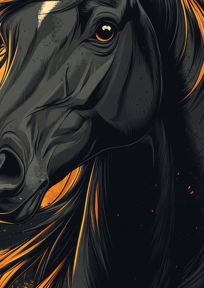 Eine Illustration eines tapferen schwarzen Pferdes.