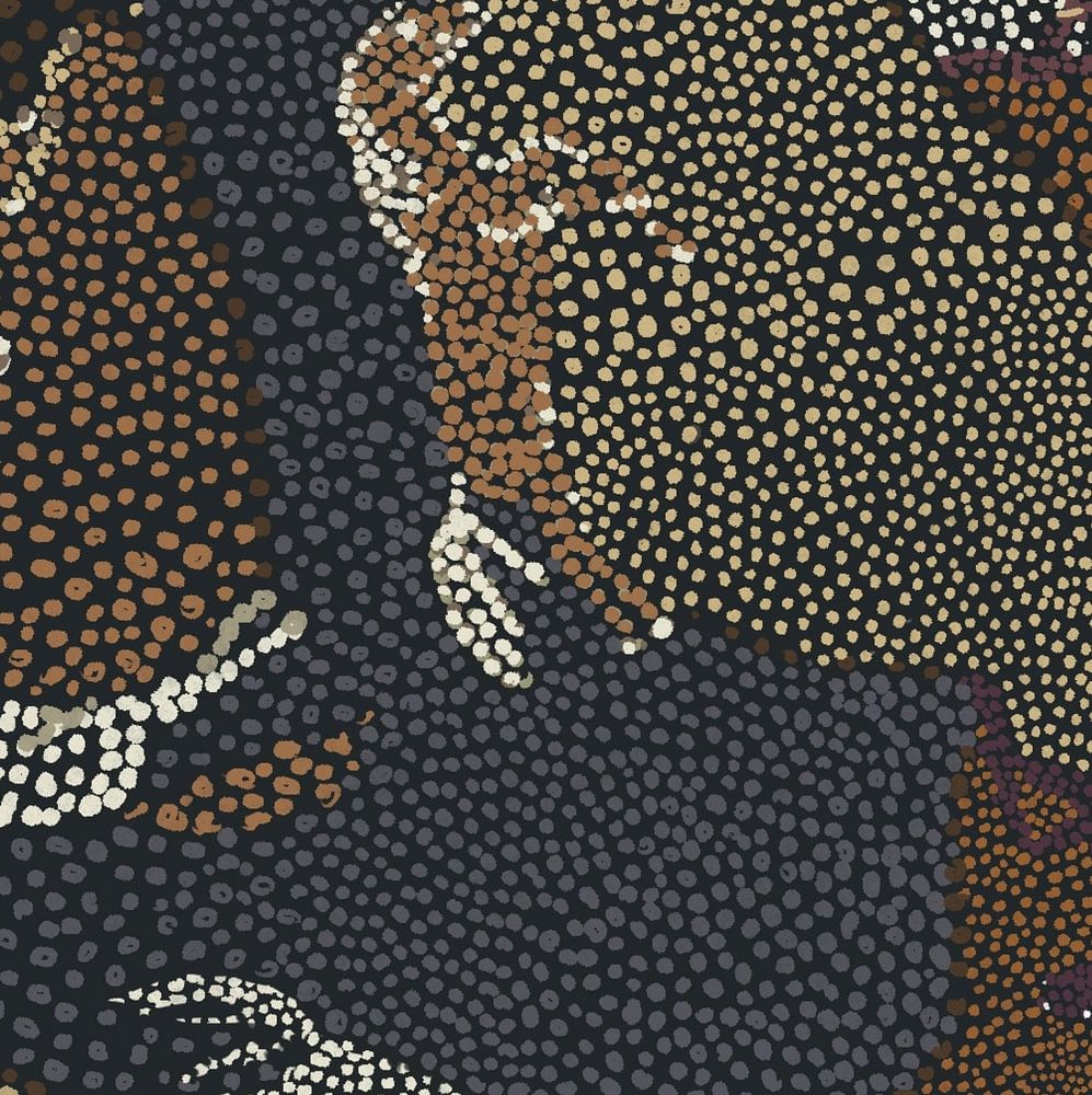Pferde auf der Weide von Go van Kampen, gemalt in einer von der Kunst der Ureinwohner inspirierten Tupftechnik.