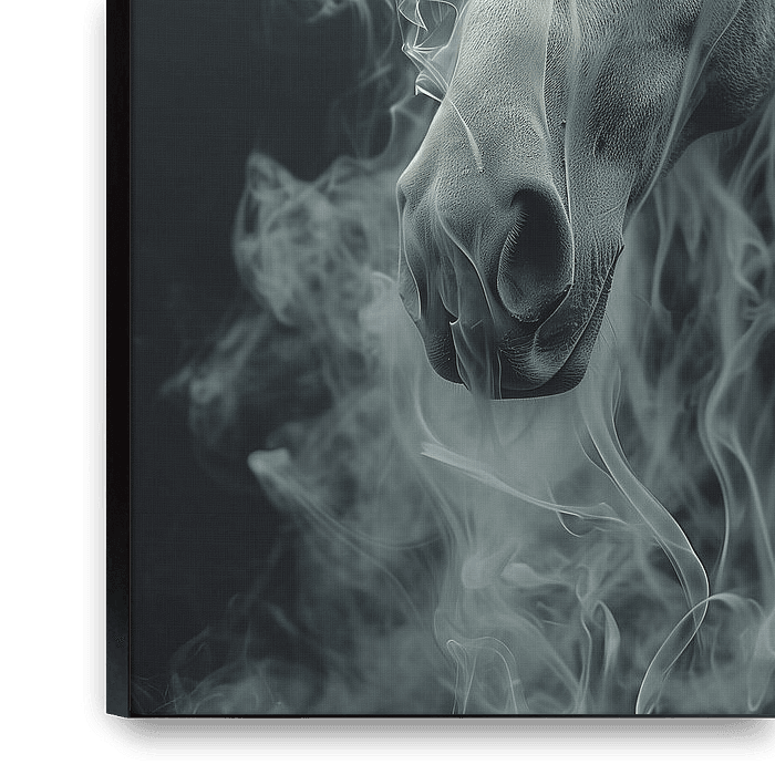 Bestelle dieses abstrakte Wandbild Pferde und Rauch von Artz by Mr.JAi als Reproduktion auf Leinwand, Alu-Dibond, als Poster, Fototapete oder Acrylglasbild.