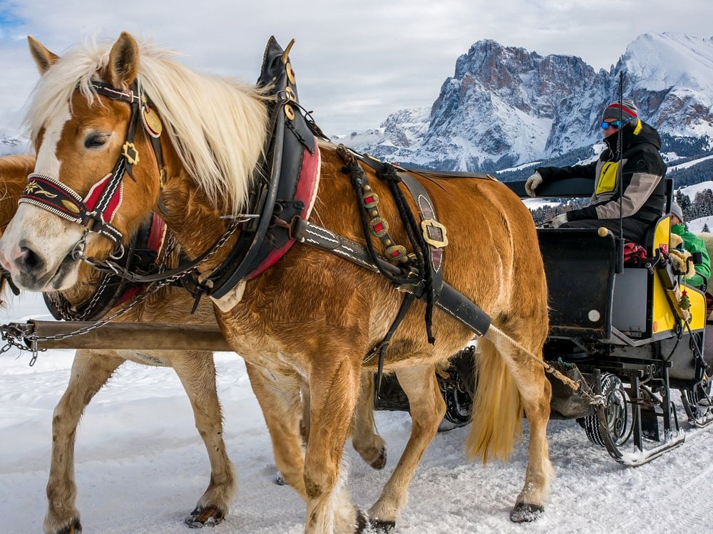 Für viele Besucher ein unvergessliches Erlebnis: eine Pferdeschlittenfahrt auf der Seiser Alm durch eine der schönsten Schneelandschaften der Dolomiten. Eingehüllt in warme Decken gleiten Sie sanft über glitzernden Pulverschnee, während die Hufe der Pferde im gleichmäßigen Rhythmus…