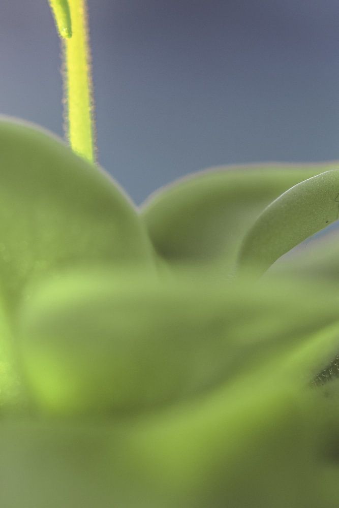A close-up of a Pinguicula’s (butterwort) flower and leaves, which look almost like a long puffy skirt..