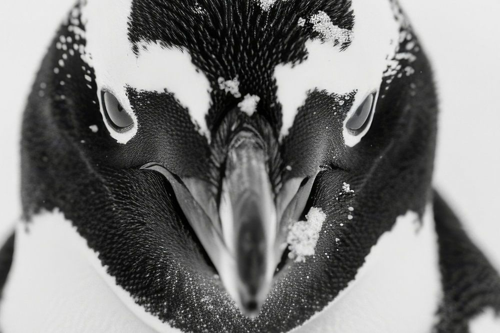 Dieses bezaubernde Schwarz-Weiß-Porträt eines Pinguins strahlt einen schlichten, minimalistischen Charme aus. Die klare Linienführung und die fokussierte Darstellung des Tieres betonen seine einzigartige Schönheit und machen das Kunstwerk zu einem Blickfang in jedem modernen Wohnraum. Perfekt für Liebhaber von minimalistischer Kunst und Naturfotografie.