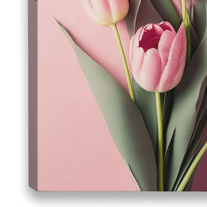 Bestelle dieses Blumen-Wandbild Pink Tulips On Pink Background von Treechild als Reproduktion auf Leinwand, Alu-Dibond, als Poster, Fototapete oder Acrylglasbild.