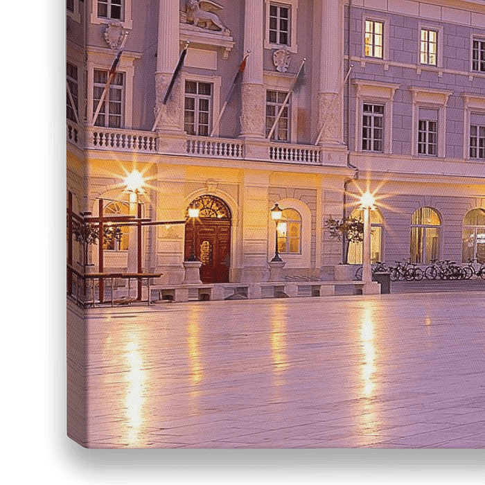 Piran ist eine malerische slowenische Stadt am Golf von Triest in der Adria. Es ist eine Touristenattraktion mit viel venezianischer Architektur. Im Zentrum der Stadt befindet sich der Tartini-Platz. Dieses Bild wurde am Abend aufgenommen.