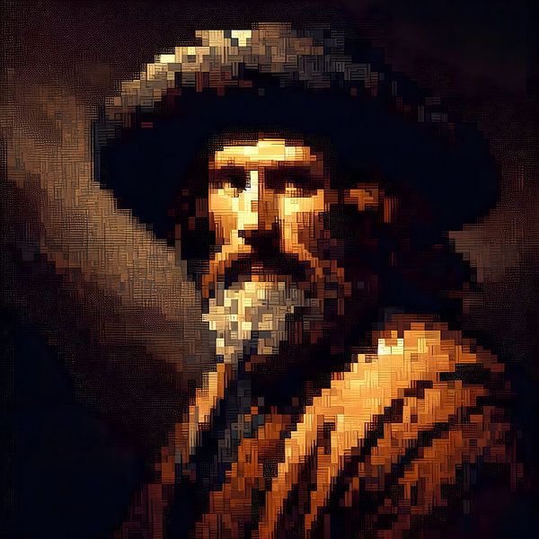 Bestelle dieses Porträt Pixelkunst Alte Meister von FoXo Art als Reproduktion auf Leinwand, Alu-Dibond, als Poster, Fototapete oder Acrylglasbild.