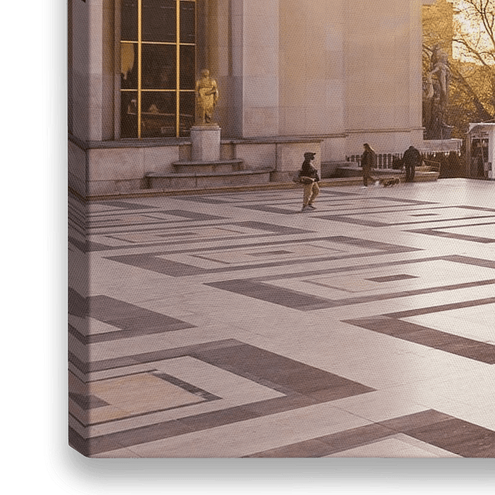 Sonnenaufgang am Place du Trocadéro und der Eiffelturm in Paris, Frankreich