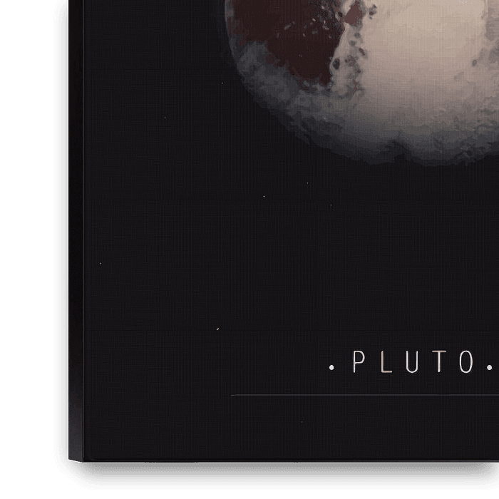 Bestelle dieses abstrakte Wandbild Pluto: Der Zwergplanet von Hazen Rocky als Reproduktion auf Leinwand, Alu-Dibond, als Poster, Fototapete oder Acrylglasbild.