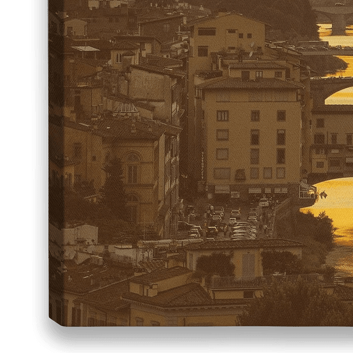 Der berühmte Ponte Vecchio bei Sonnenuntergang. Die Ponte Vecchio, eine berühmte mittelalterliche Brücke über den Fluss Arno in Florenz, Italien.