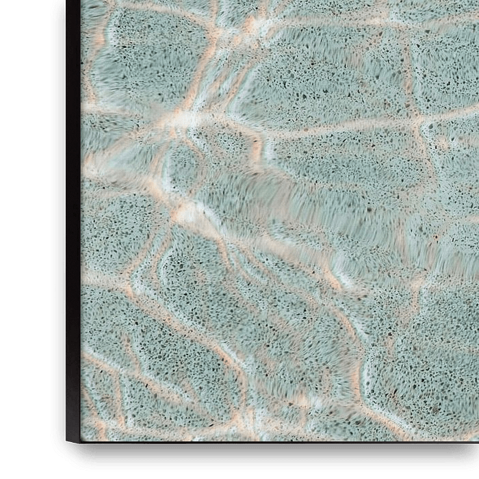 Fotografie des klaren türkisfarbenen Poolwassers mit brillanten Lichtreflexen. Dieses minimalistische und sommerliche Kunstwerk strahlt Ruhe, Luxus und Urlaubsstimmung aus. Perfekt als Wanddekoration oder Fotodruck im Wohnzimmer, Schlafzimmer oder Büro.