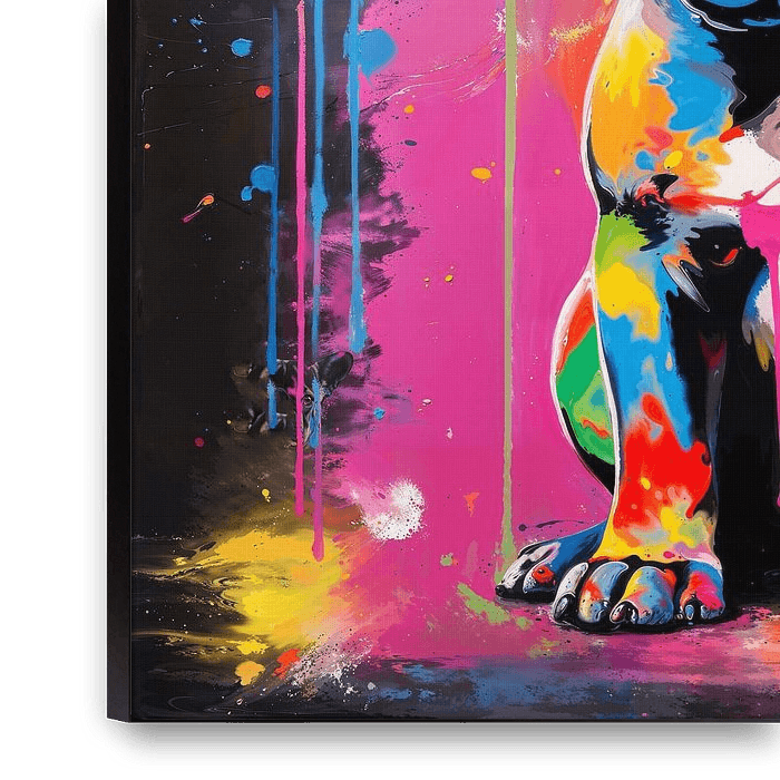 Eine französische Bulldogge im Stil eines bunten Pop Art Gemäldes.