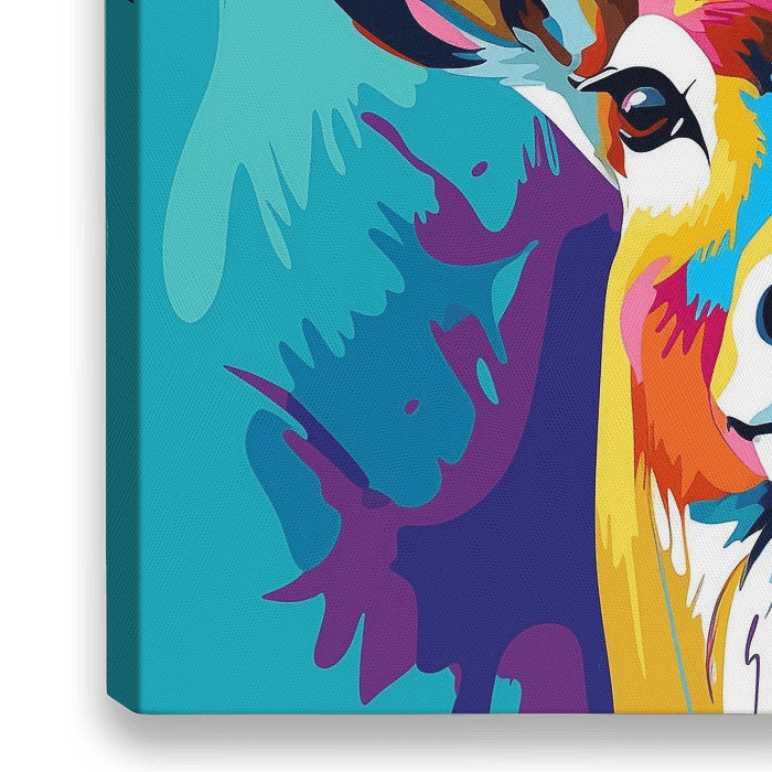 Bestelle dieses abstrakte Wandbild Pop Art Hirsch von YArt als Reproduktion auf Leinwand, Alu-Dibond, als Poster, Fototapete oder Acrylglasbild.