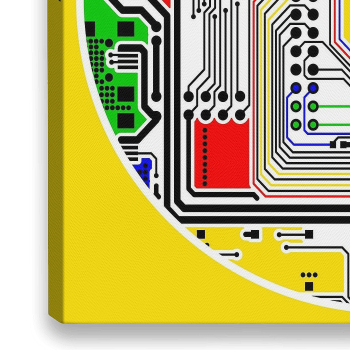 Pop Art eines Platinen-Layouts mit gelben Hintergrund.