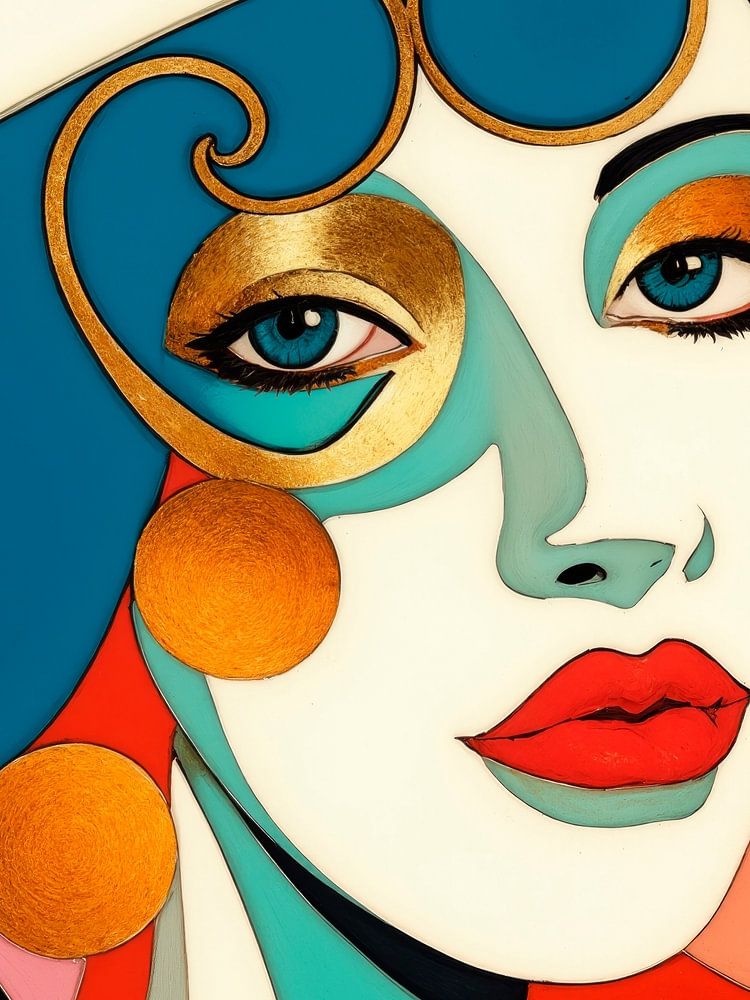 Dieses digitale Gemälde kombiniert Vintage-Eleganz mit moderner Lebendigkeit, ideal für alle, die eine einzigartige, ausdrucksstarke Atmosphäre schaffen wollen.