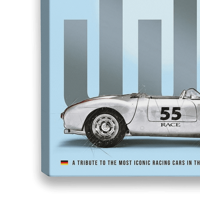 Bestelle diese Illustration Porsche 550 RS Tribute von Theodor Decker als Reproduktion auf Leinwand, Alu-Dibond, als Poster, Fototapete oder Acrylglasbild.