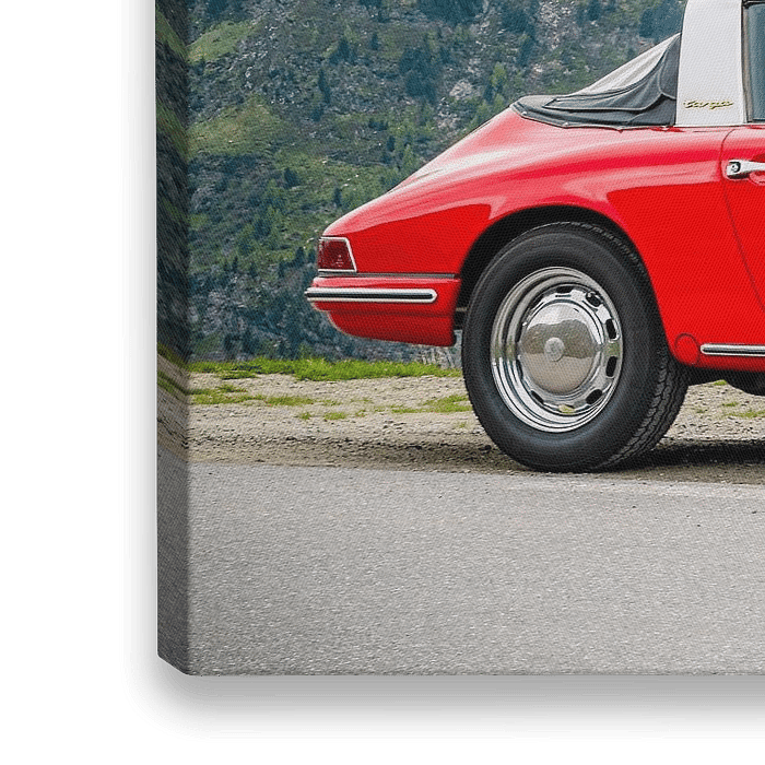 Bestelle dieses Landschafts-Wandbild Porsche 912 Targa klassischer Sportwagen in den Alpen von Sjoerd van der Wal Fotografie als Reproduktion auf Leinwand, Alu-Dibond, als Poster, Fototapete oder Acrylglasbild.