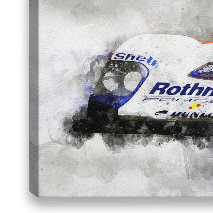 Bestelle diese Malerei Porsche 956 Le Mans, Jochen Mass von Theodor Decker als Reproduktion auf Leinwand, Alu-Dibond, als Poster, Fototapete oder Acrylglasbild.