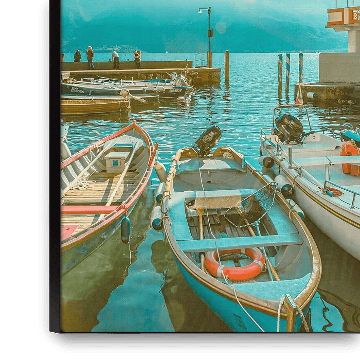 Bestelle das Foto Porto di Gargnano von Michael Schulz-Dostal als Reproduktion auf Leinwand, Alu-Dibond, als Poster, Fototapete oder Acrylglasbild.