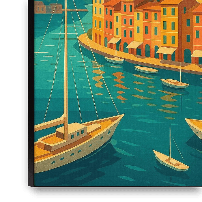 Bestelle dieses Art Deco-Wandbild Portofino Hafen - Vintage Italienische Riviera Poster von Travel Shop als Reproduktion auf Leinwand, Alu-Dibond, als Poster, Fototapete oder Acrylglasbild.