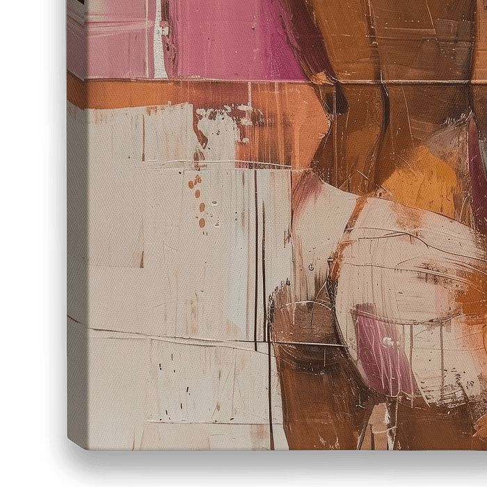 "Harmony in Contrasting Colours," eine digitale Kreation von René van den Berg, spielt mit den für den Neo-Expressionismus typischen rauen Texturen und lebhaften Kontrasten. Das Kunstwerk zeigt den Rücken einer Figur, wobei der Schwerpunkt auf geometrischen und organischen Formen in einer Palette aus tiefen Rosa-, Braun- und…