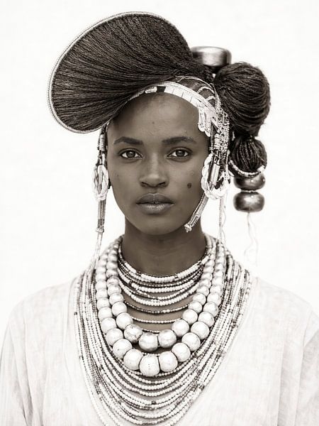 Ein zeitgenössisches Porträt mit historischem Hintergrund der afrikanischen Kultur.