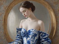Bestelle dieses Porträt Porträt einer Frau in Delfter Blau von Jolique Arte als Reproduktion auf Leinwand, Alu-Dibond, als Poster, Fototapete oder Acrylglasbild.