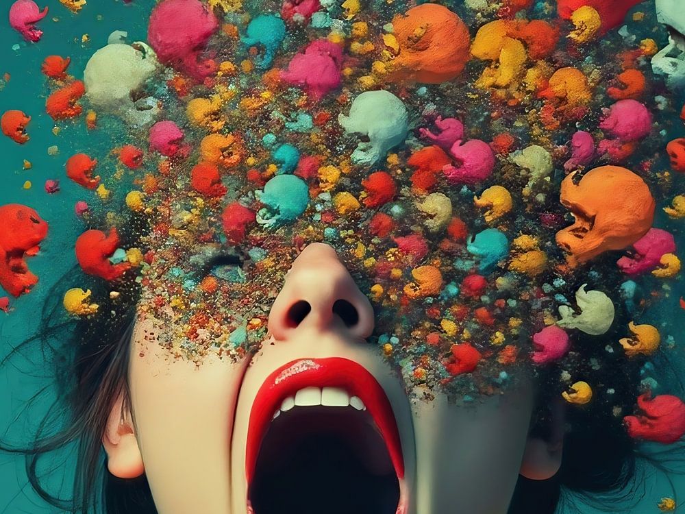 Ein schönes Modell mit einer Blumenfrisur, die ein schönes surreales Bild erzeugt.